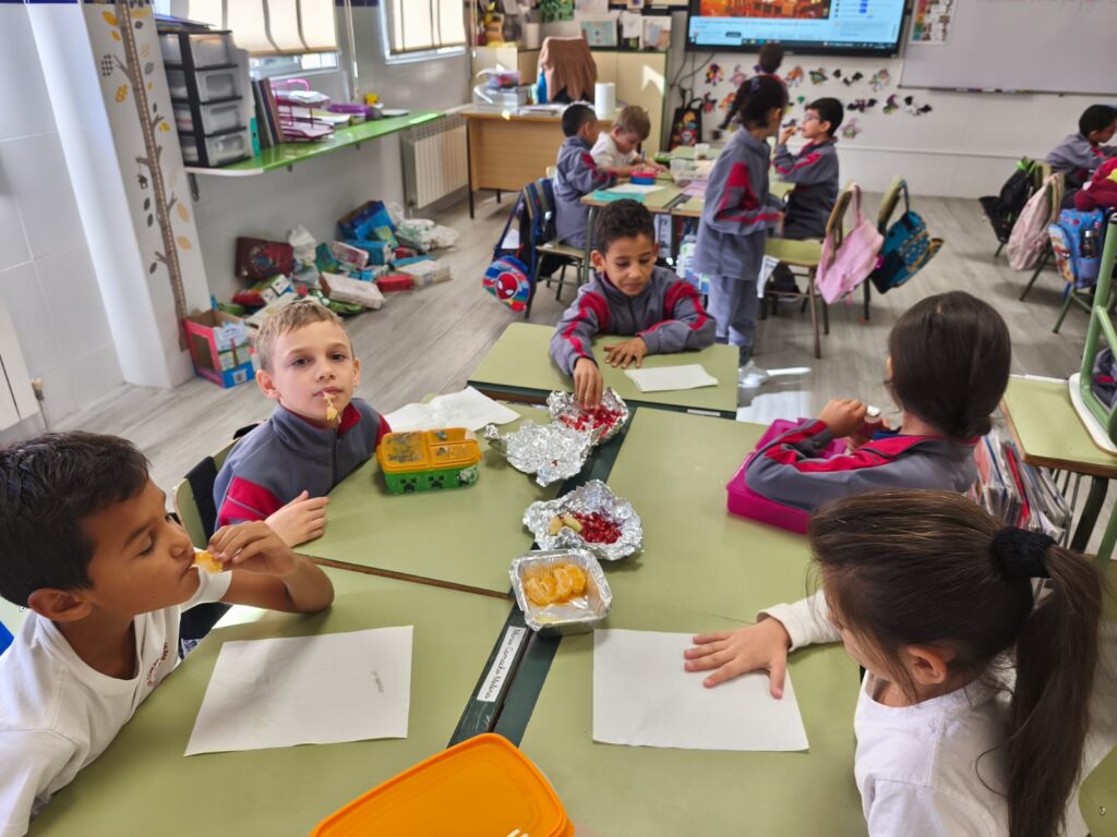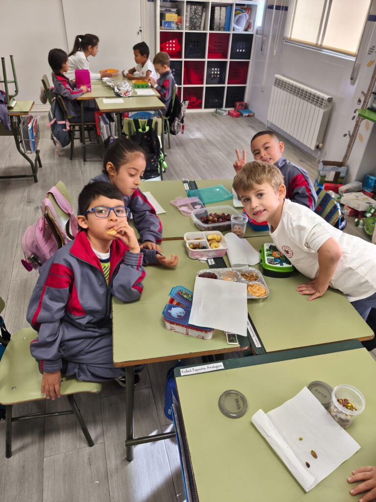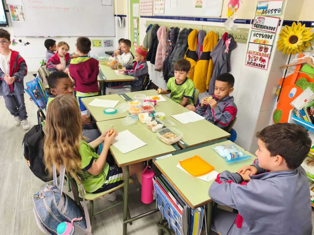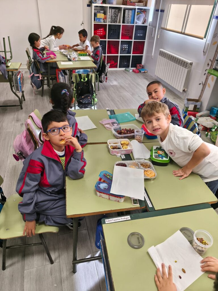 Además, también tuvieron ocasión de compartir un almuerzo de otoño, en el que todos llevaron frutos secos o varias frutas de temporada a la clase para compartir con los demás compañeros y compañeras. En definitiva, una mañana de convivencia, risas, almuerzos saludables, juegos, cuentos… Todo ello con el aroma de las castañas asadas y como colofón: ¡Todos se llevaron unas cuantas castañas a casa!