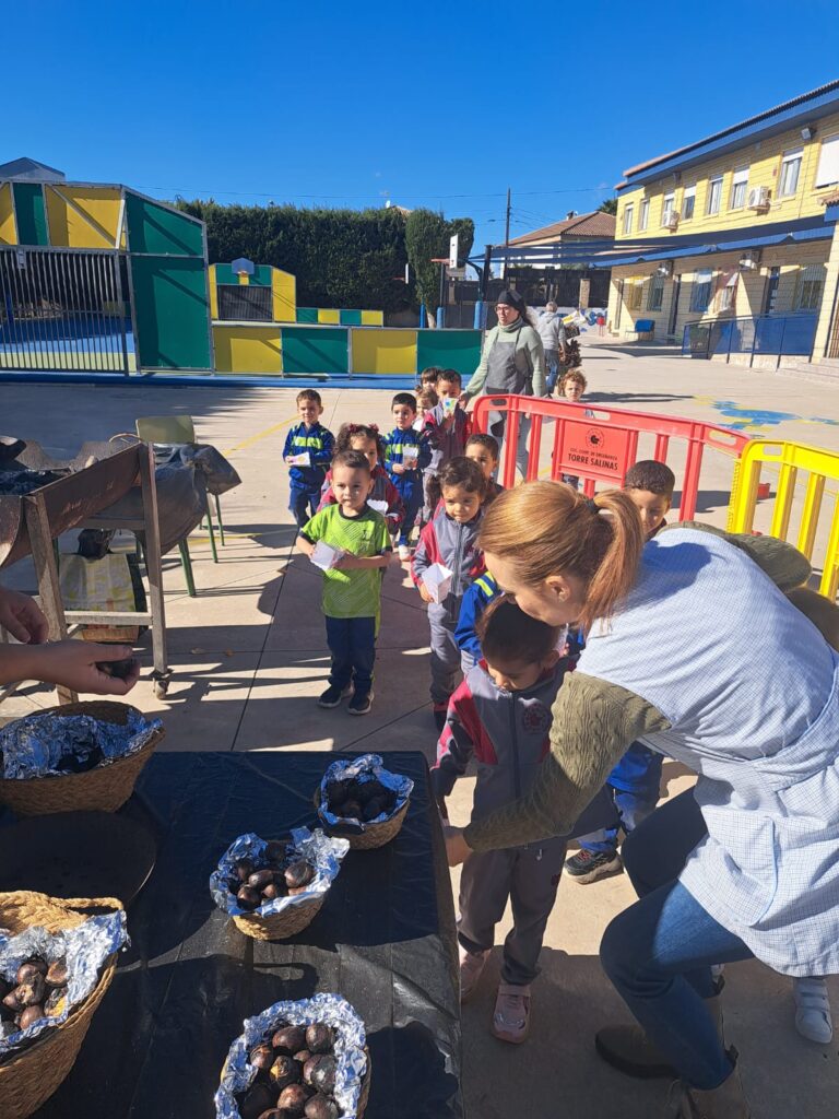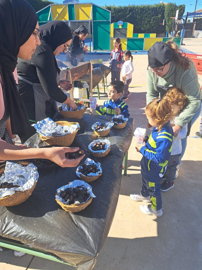 Durante todo el día, el alumnado pudo descubrir una de las nuestras tradiciones más significativas en esta temporada: “las castañeras”. Comenzando con un cuenta cuentos ” La castañera Felipa”, pasando por diferentes actividades para conocer el vocabulario, los colores del otoño y sus frutos de temporadas; hasta realizar su propio cucurucho para recibir las castañas que nuestras familias de la AMPA estuvieron asando frente a ellos a lo largo de la mañana.
